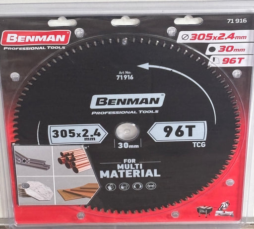 Benman 71916 Circular Saw Blade Multi Material For Table Saw & Miter Saw 305 X 2.4 mm/30 mm 96T