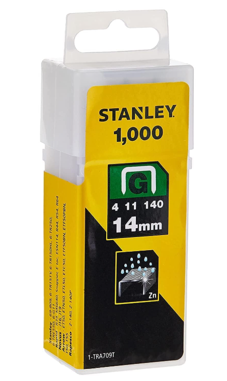 StanleyOriginal price€3.25 EUR- Original price€3.25 EUROriginal price€3.25 EUR€3.25 EUR-€3.25 EURCurrent price€3.25 EUR| /Low stockSharpShooter Type G Heavy-Duty Staples. Also known as Type: 4, 11 or 140. Fit Stanley: 69-809, TR60, TR100 series, TR200 series, TRE500 series, PHT...